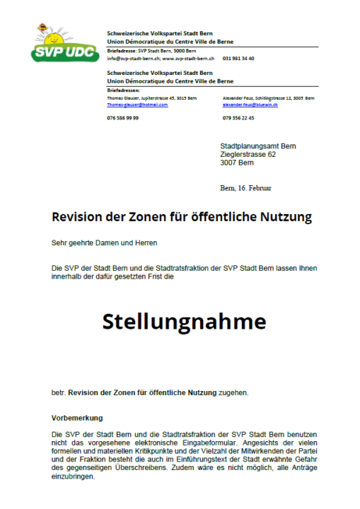 Stellungnahme betreffend Revision der Zonen für öffentliche Nutzung